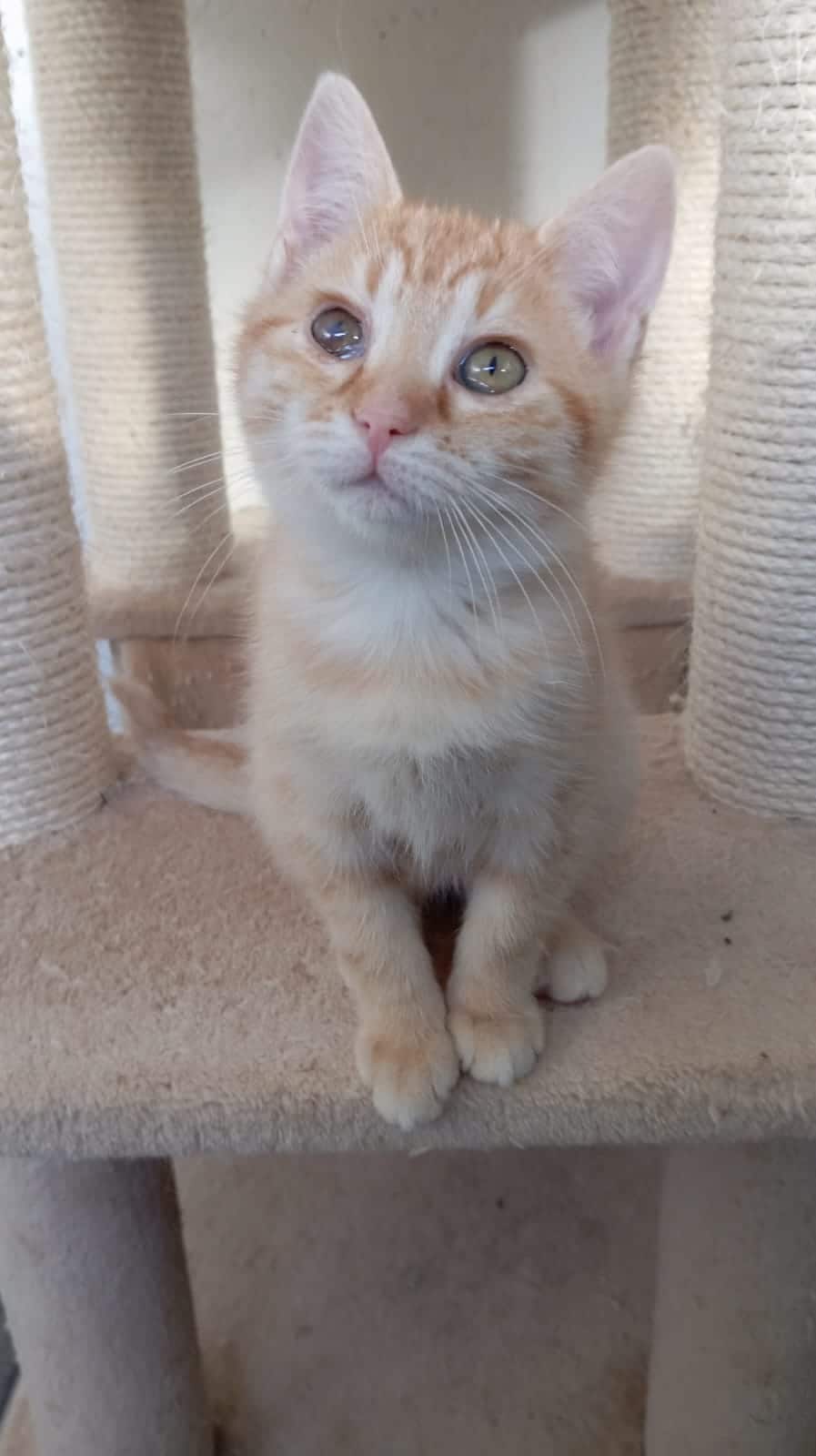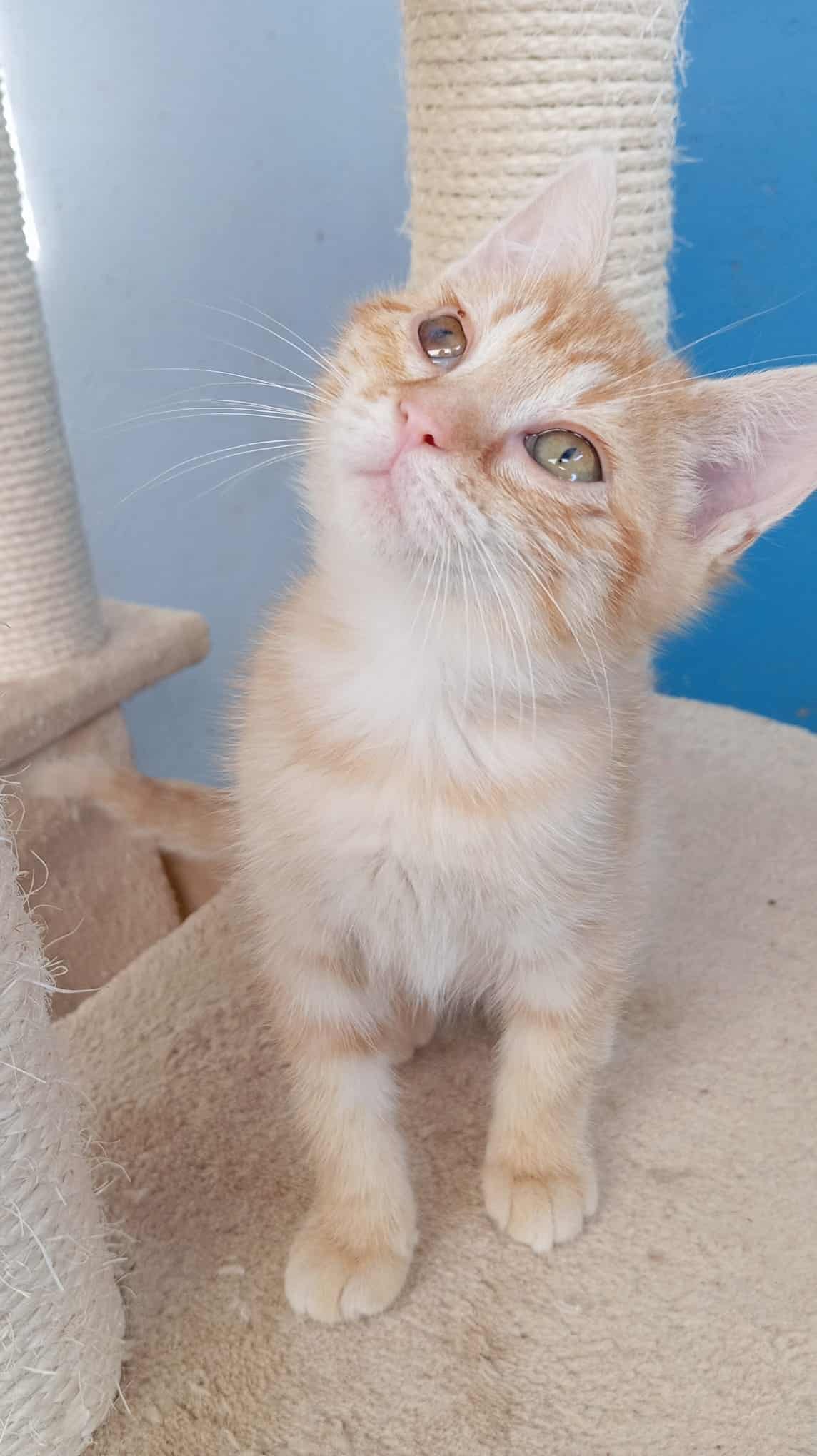Pathologie(s) : ARIEL a reçu un coup de griffe dans son oeil droit avant sa prise en charge. Cela n’a pas été soigné et nous avons tenté lors de son arrivée mais sans réussite car trop tard. Elle a donc un ulcère qui entraine juste esthétiquement un oeil plus foncé mais elle voit parfaitement des deux yeux.