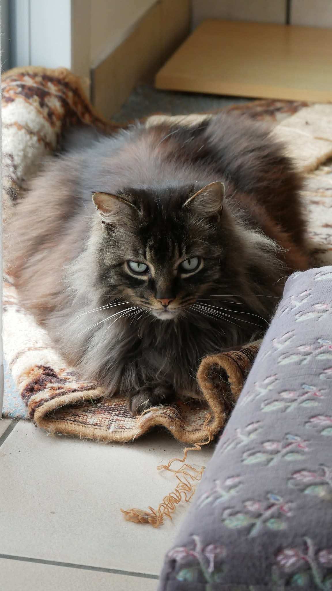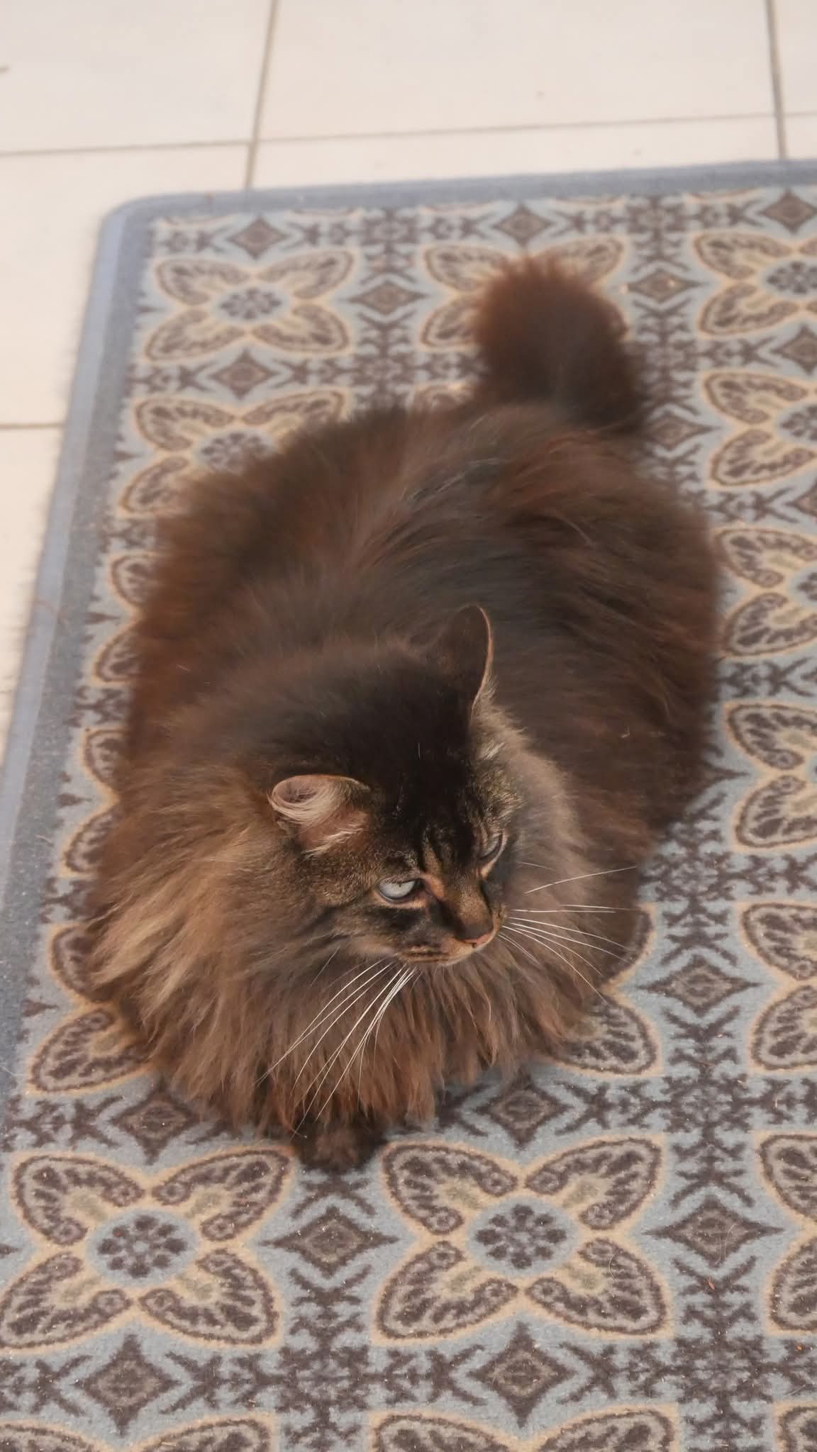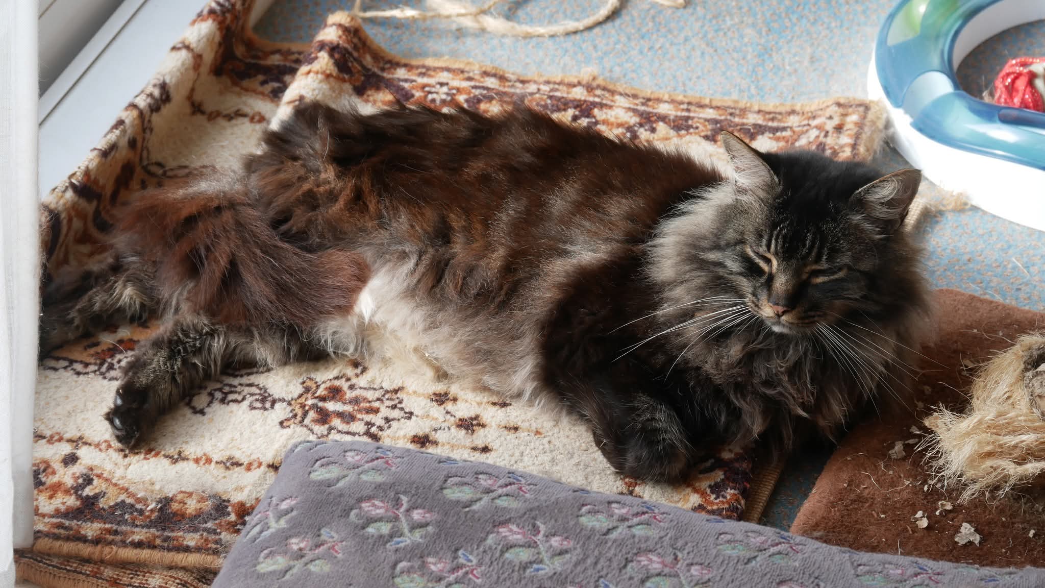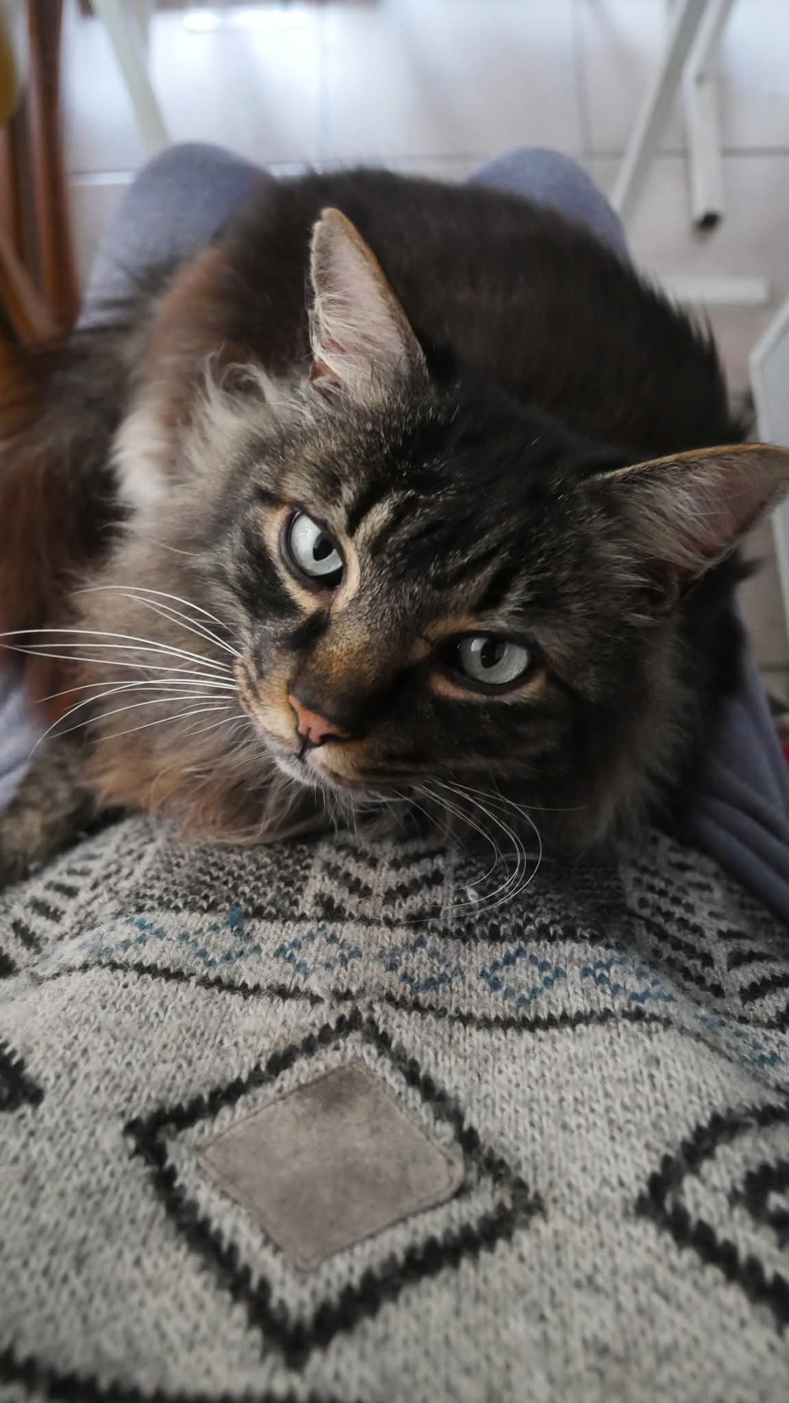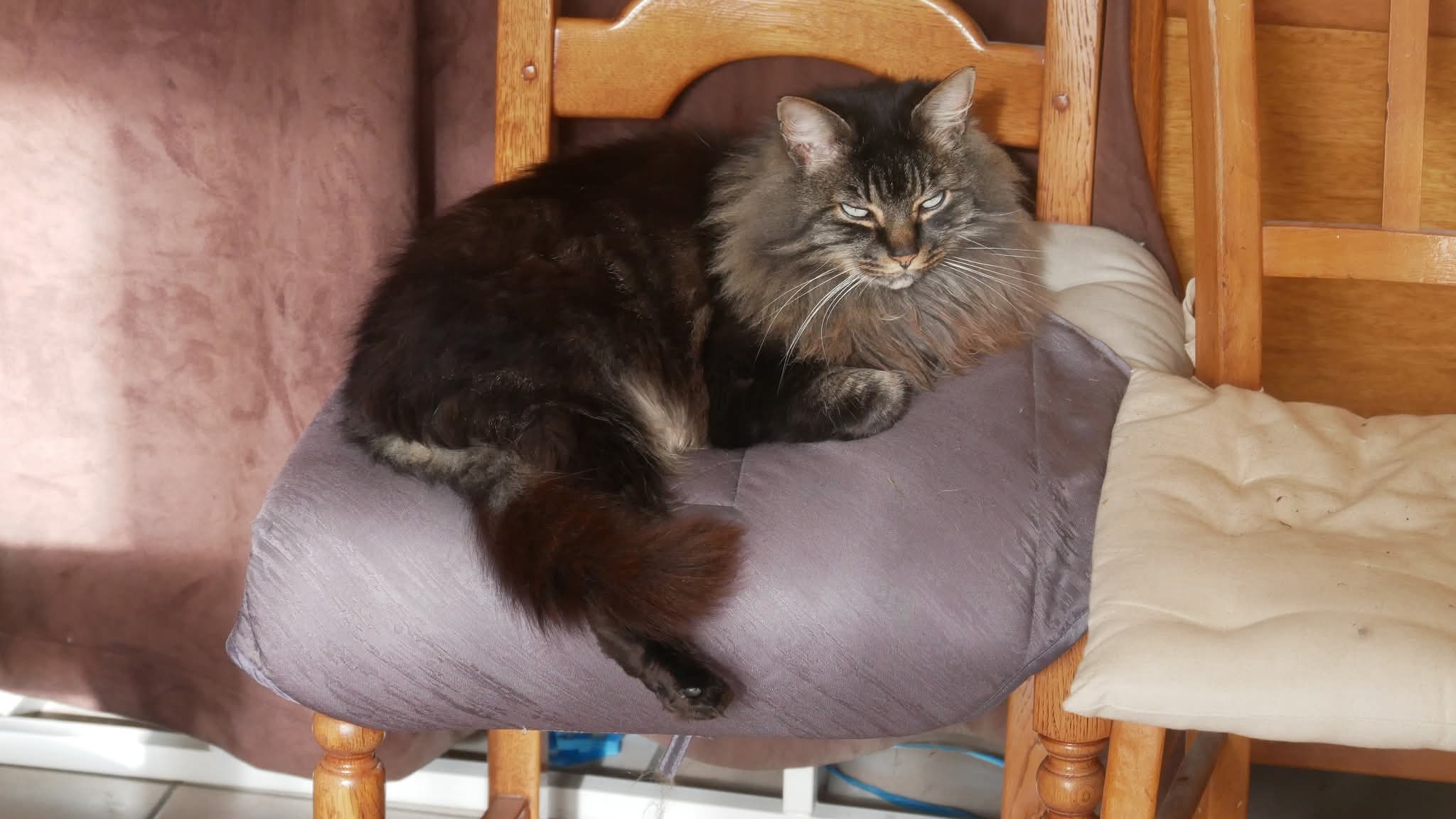 Il était habitué à sortir faire un petit tour dehors mais c’est principalement un chat d’intérieur même un chat de canapé.