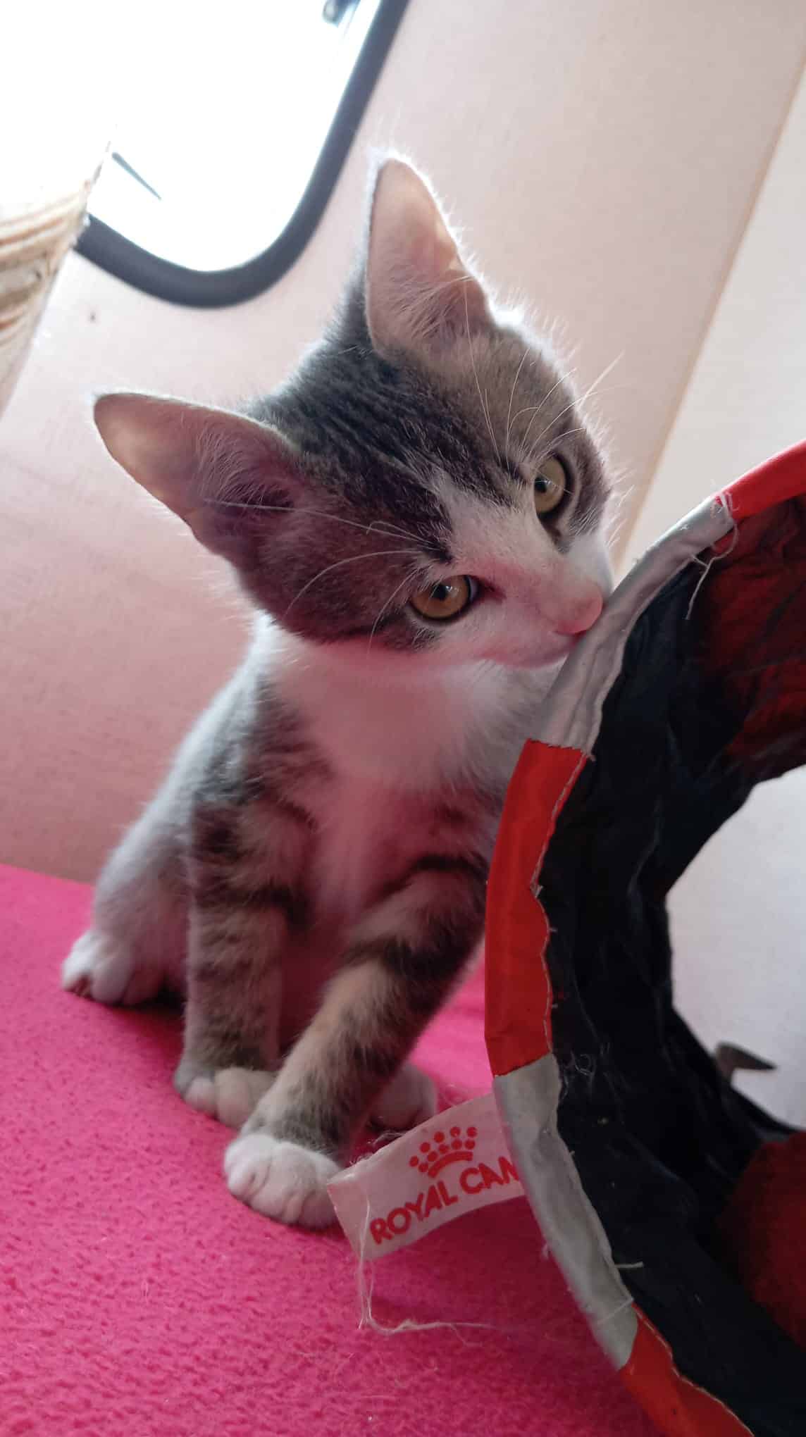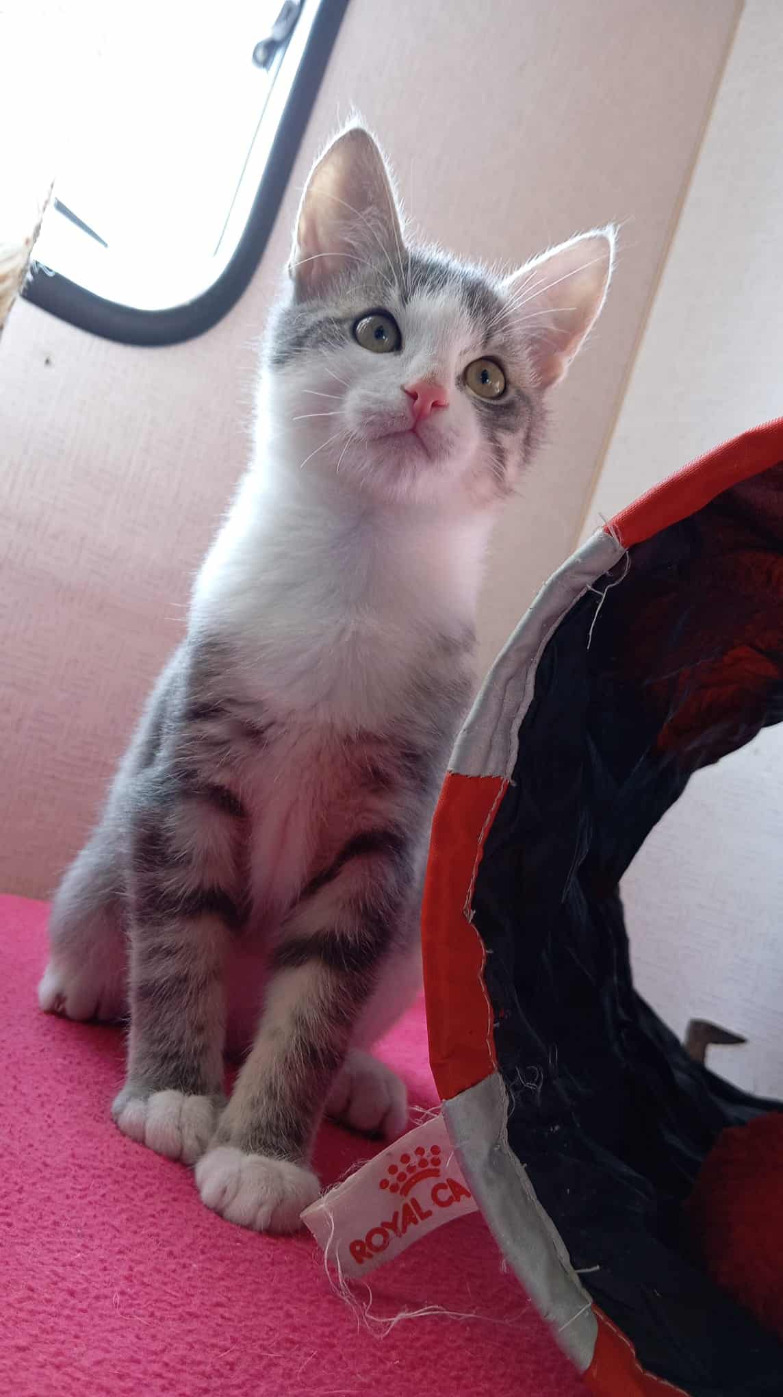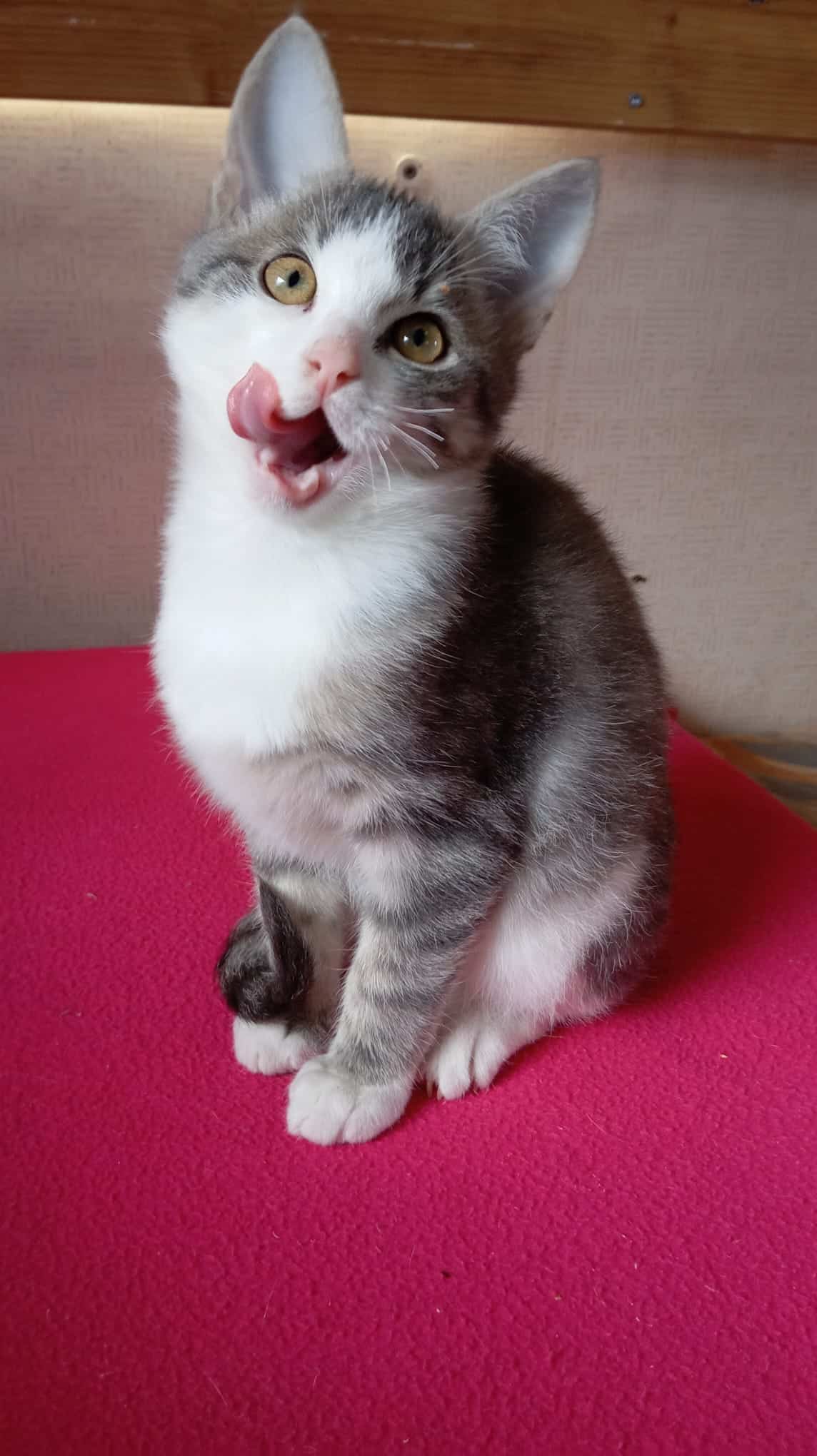 BASIL a été trouvé errant à l’âge de 10 jours avec ses soeurs CAPUCINE, HORTENSE et ROSE. Ils allaient être euthanasié à la fourrière ca personne pour biberonner, nous avons donc pris en charge les petits et biberonné.