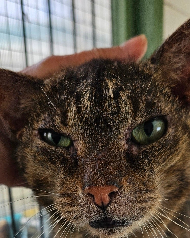 Malheureusement l’adoptante de BOREAL est décédée et là sa vie a changé… La famille de l’adoptante a tenté de s’occuper de lui mais malheureusement c’est la rue qu’il a connu car pas heureux dans son nouveau chez lui. Voyant que la situation n’était plus possible pour BOREAL nous avont été contacté et nous l’avont récupéré. Son état est catastrophique, il semble bien plus âgé, la rue l’a vraiment abîmé. Par chance et sans doute grâce à sa stérilisation malgré une vaccination non à jour et une errance si importante : il est toujours sain !! Nous espérons que ce soit juste superficiel et qu’avec l’amour et les soins nécessaire il retrouve sa beauté et sa forme car ce petit bonhomme le mérite tellement !