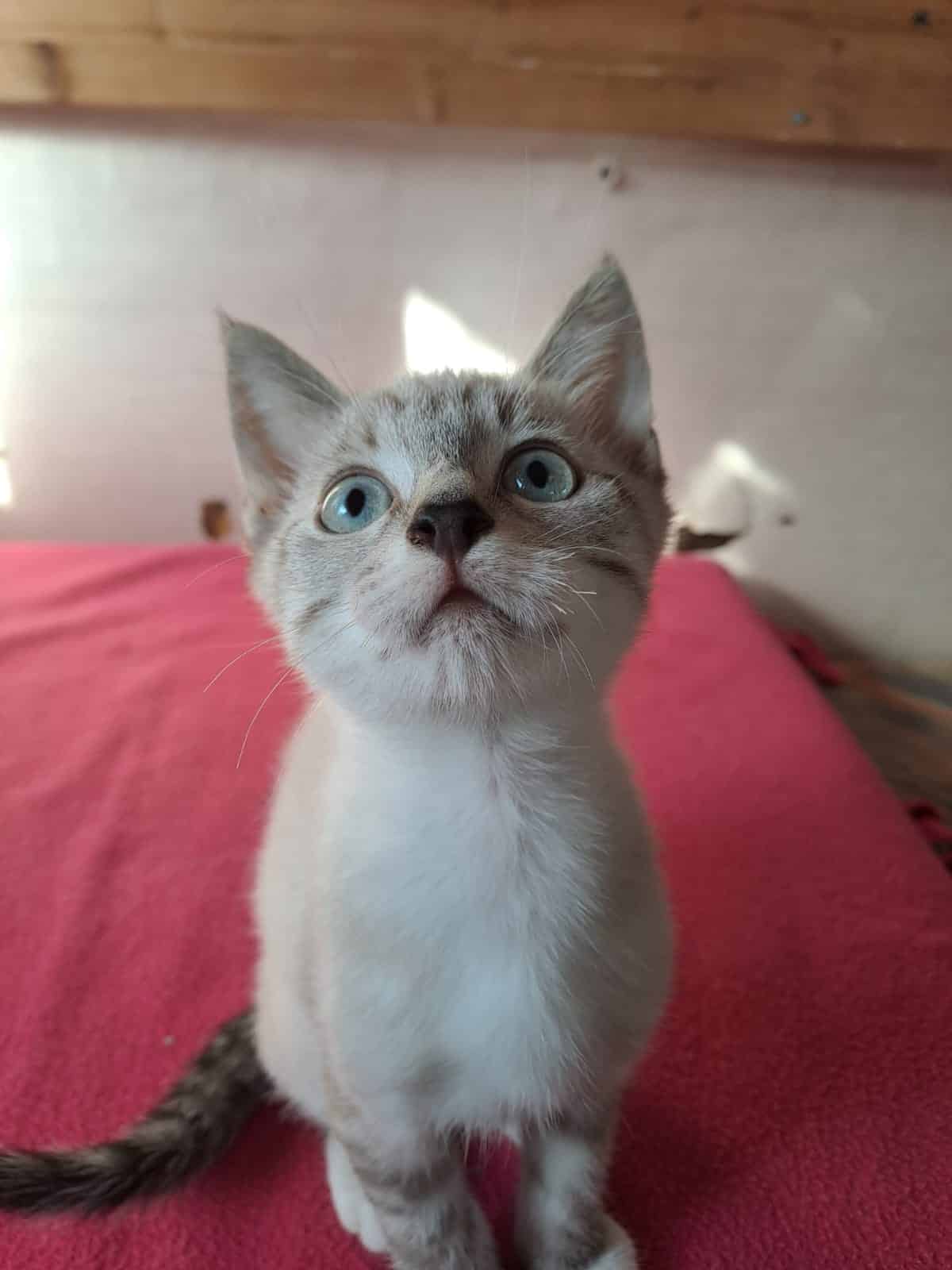 JASMIN est un chaton craintif qui n’a jamais connu l’humain, il ne présente pas d’agressivité et se laisse caresser lorsqu’il connait l’humain. C’est un chaton joueur mais qui reste craintif et aura besoin de temps pour prendre confiance.