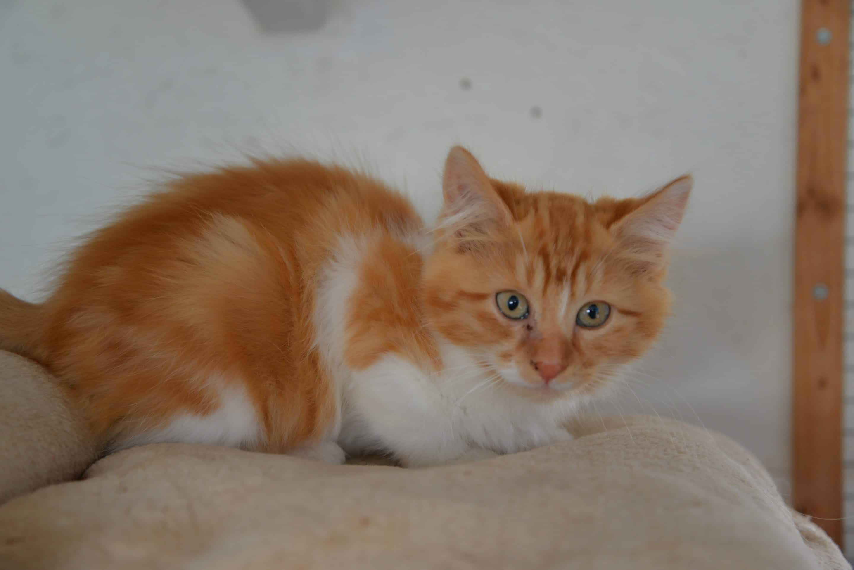 KISS est un chaton craintif qui n’a jamais connu l’humain mais qui avec douceur apprécie les caresses et le jeu. Il deviendra une fois en confiance un chaton gentil, doux  et affectueux c’est certain.