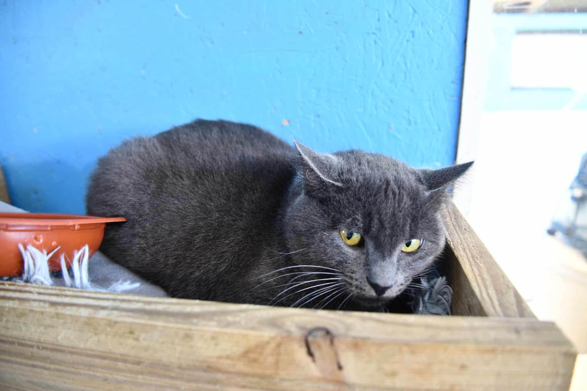 C’est un chat qui n’a jamais connu l’humain, il ne présente pas d’agressivité et se laisse caresser  un peu par les bénévoles qu’il connait quand il est rassuré mais il n’apprécie pas encore cela. C’est un chat plutôt calme et réservé, il peut avoir envie de jouer quand il oublie un peu ses peurs, il est aussi gourmand. C’est un chat qui aura besoin d’une grande douceur, de calme et de patience…